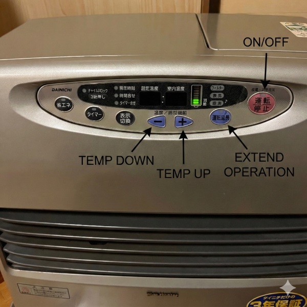 • Japanese heaters usually turn off automatically after 3 hours for safety. It will beep or play a melody to warn you before turning off.
